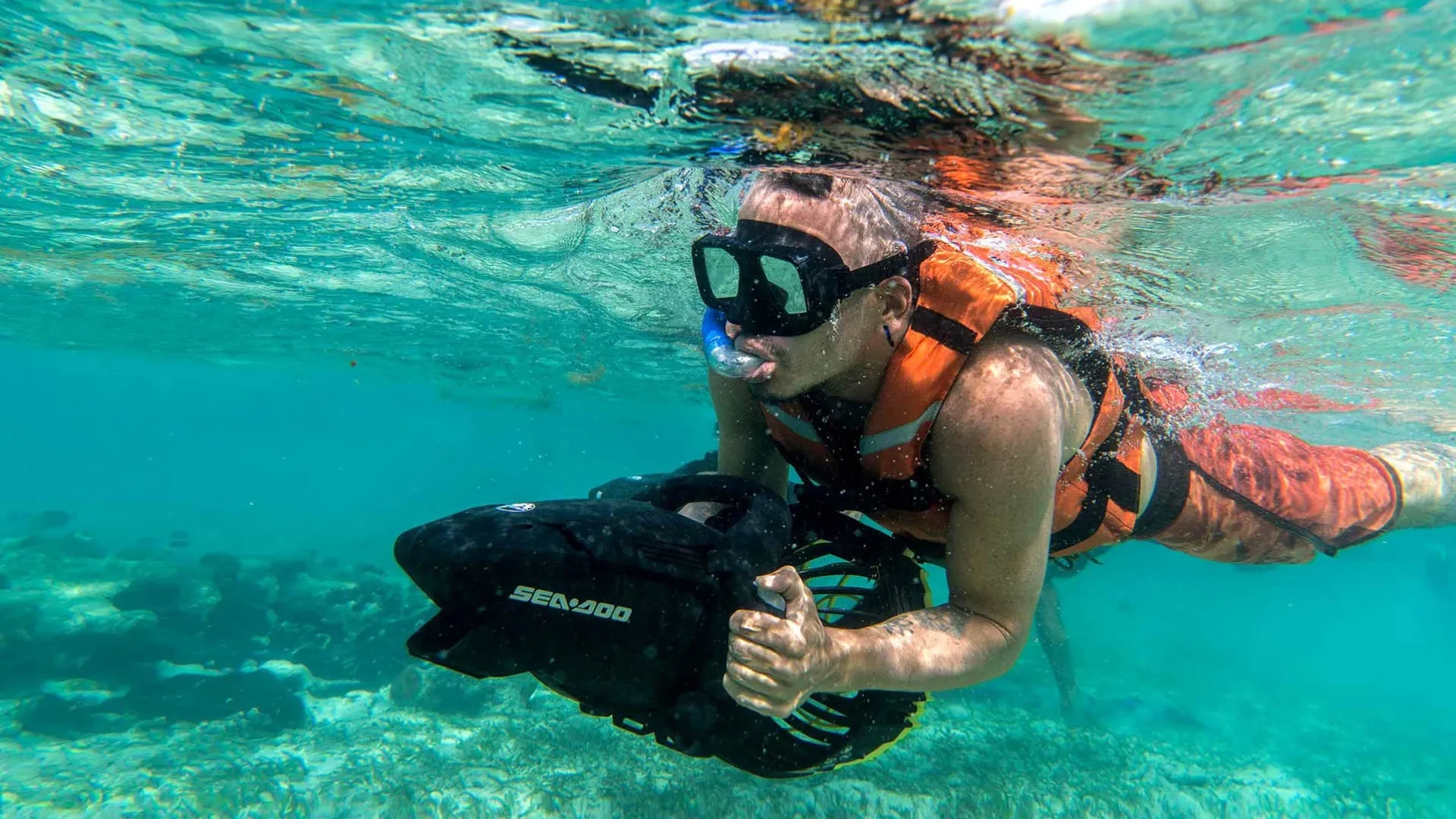 We offer guided snorkeling tours with underwater scooters! Our underwater scooters are battery powered and designed to do all the work for you. Explore the wonders of the oceans brilliant colors and incredible marine life all at the push of a button on our scooter. See diverse marine life and colorful coral while being propelled via sea scooter through waters surrounding the reef. we take snorkeling to the next level! Yup with these beauties, James Bond and Jacques Cousteau have nothing on you!