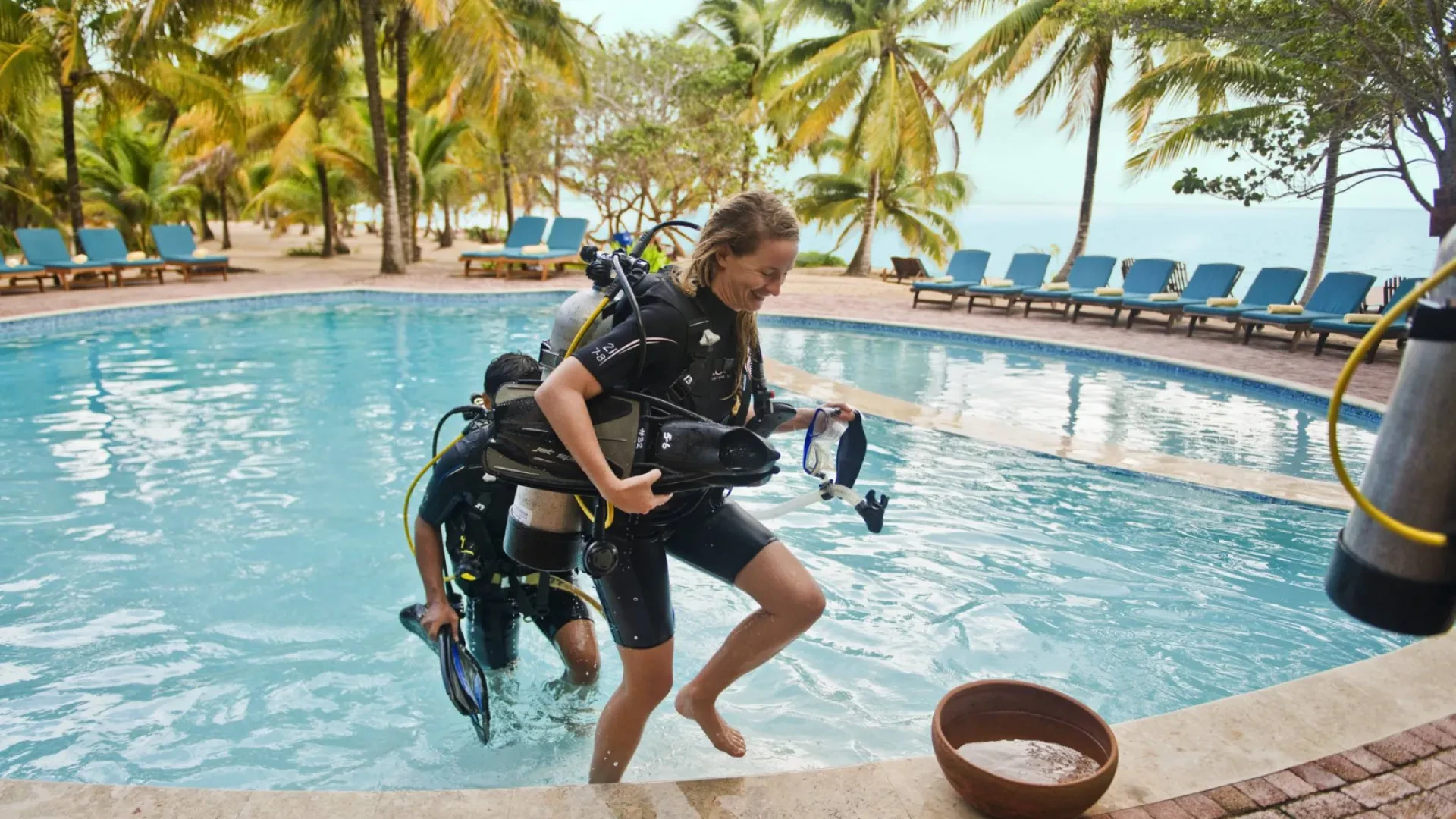 The first part of your PADI Discover Scuba Diving course is all about equipment: learn what gear you need to scuba dive, and how to use it to move around under water. The pool session will take place at the Hilton hotel. It is a controlled, closed-water chance to practice your skills at the dive center, and to take your first breaths underwater.