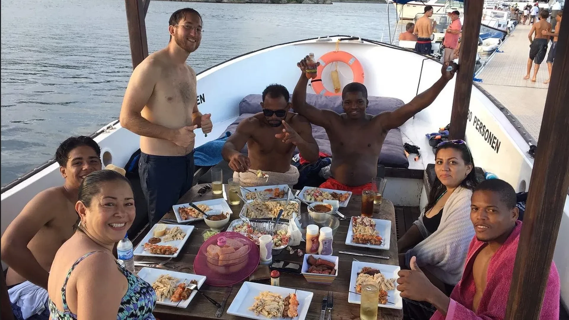 Enjoy a delicious BBQ feast as you cruise around the Spanish Waters of Curacao with your friends and family aboard our spacious longboat then stop to swim and snorkel at Fuik Bay.